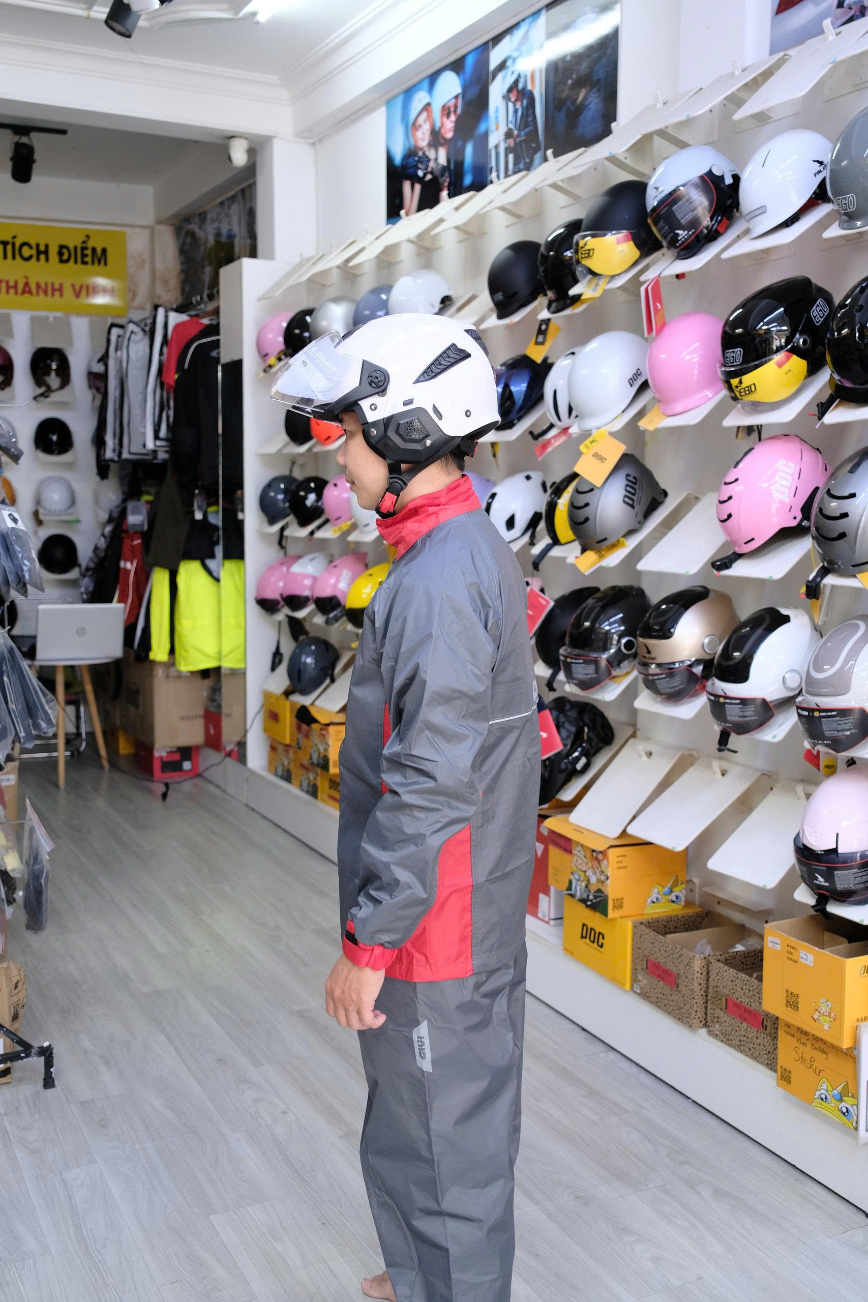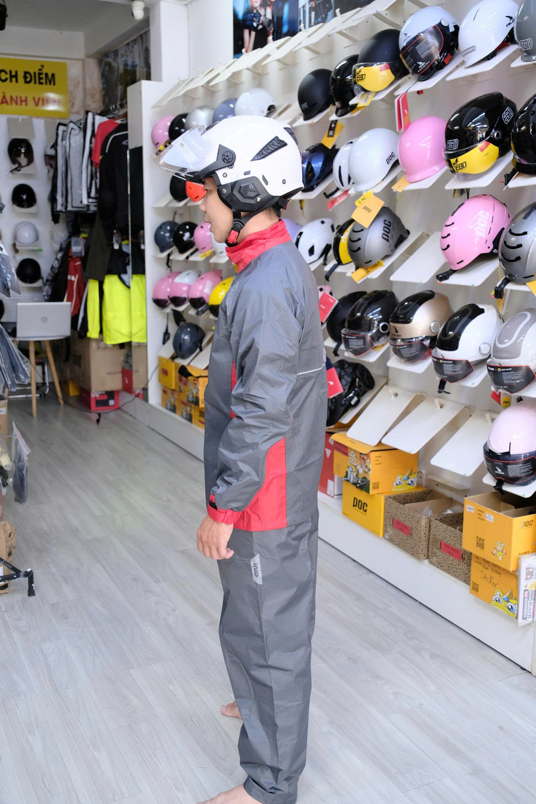 – Áo mưa được phối màu đen xám (trong đó màu đen là màu chủ đạo).