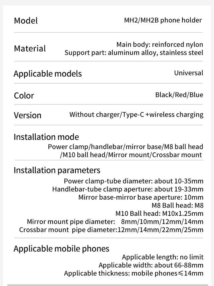 I.Thông Số Kỹ Thuật Giá Đỡ Điện Thoại Motowolf MH2: