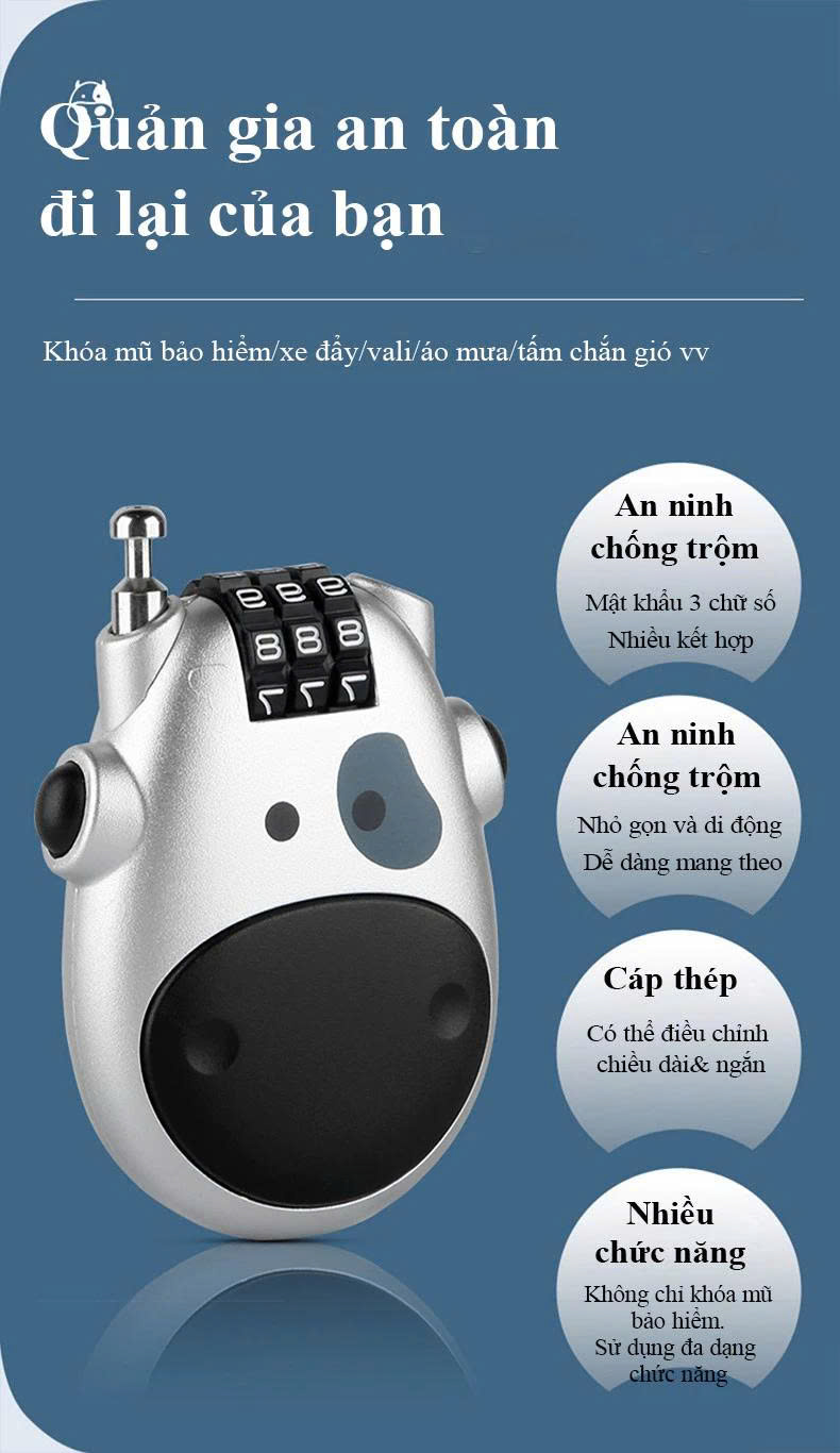 Khoá Mũ Bảo Hiểm Hình Con Bò 36cm Chống Mất, Cắp