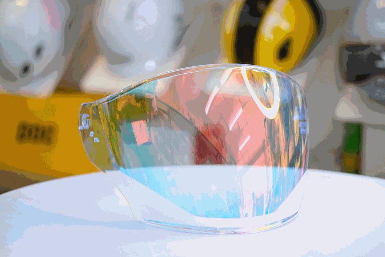 Kính Royal M979 với chất liệu Polycarbonat giúp cho tầm nhìn tốt hơn, không tạo ra ảo giác. Khả năng chống trầy cũng tốt hơn so với các loại thông thường. Nón có hai kính, với phần kính trong hỗ trợ đi ngày, chống tia uv, chống chói và dễ dàng thao tác kéo kính, tuỳ chỉnh.
