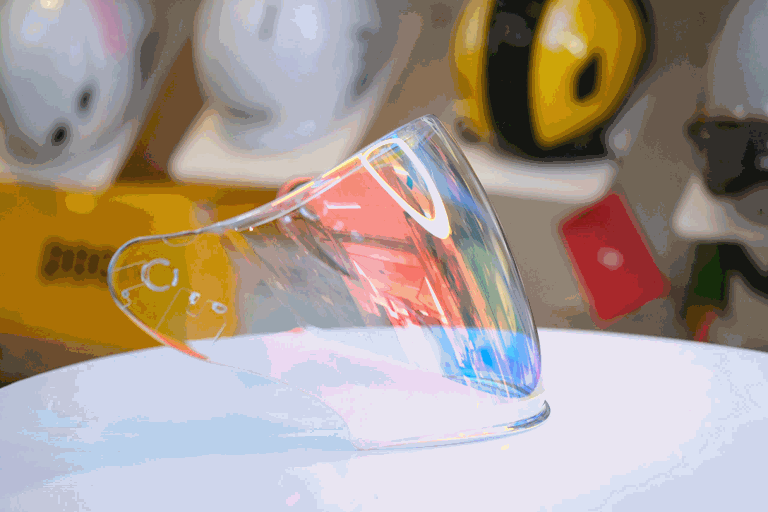 Kính Royal M979 với chất liệu Polycarbonat giúp cho tầm nhìn tốt hơn, không tạo ra ảo giác. Khả năng chống trầy cũng tốt hơn so với các loại thông thường. Nón có hai kính, với phần kính trong hỗ trợ đi ngày, chống tia uv, chống chói và dễ dàng thao tác kéo kính, tuỳ chỉnh.